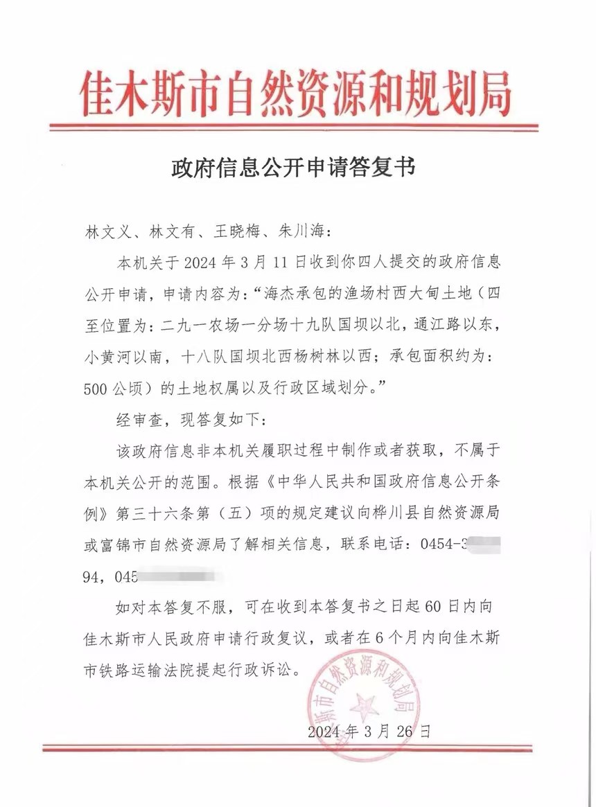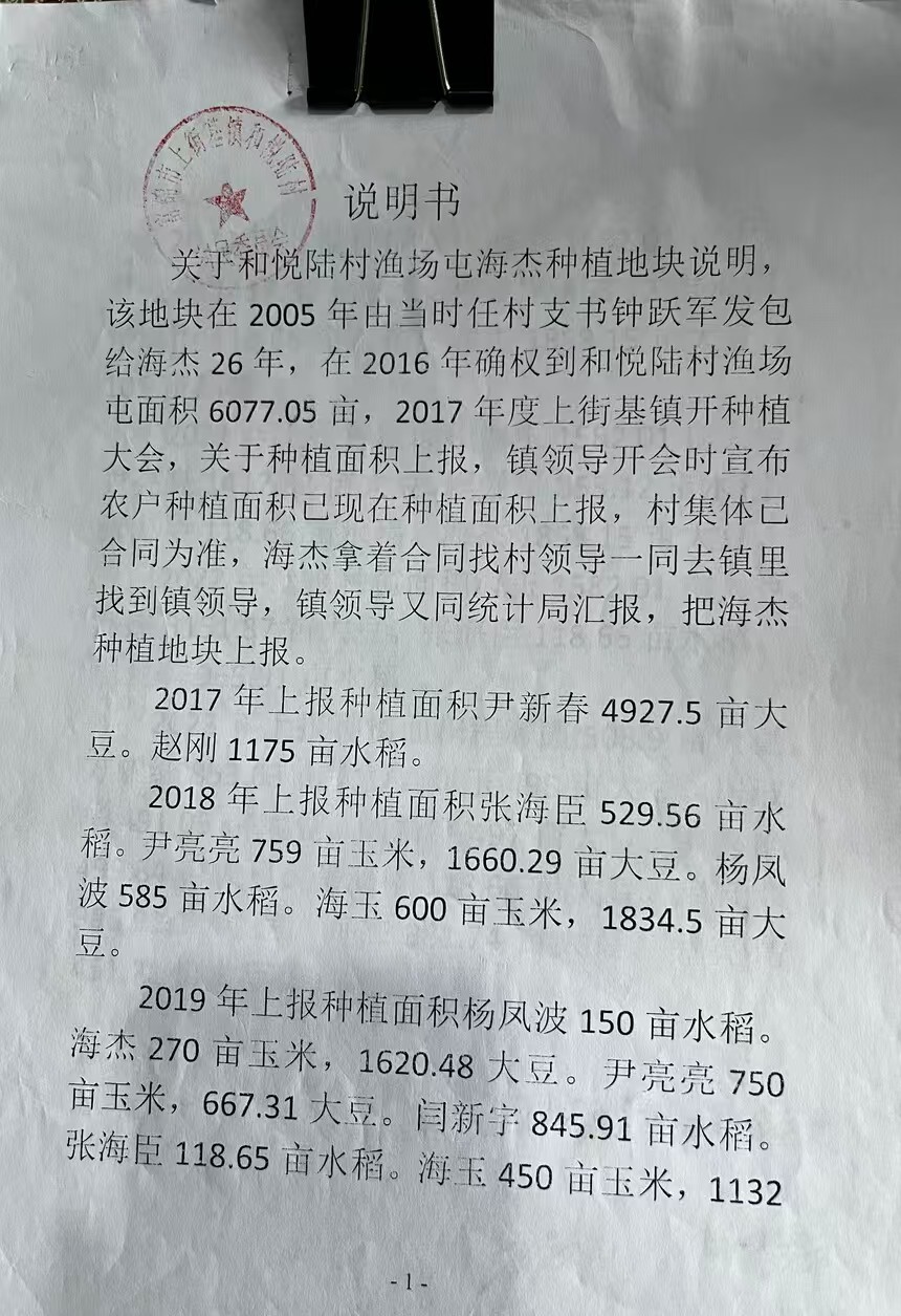 在2017年土地确权时,海某却和他的儿子当时的村长尹某春用移花接木的方法把桦川县湿地局的国有土地确权到渔场村集体土地,严重触犯宪法和土地管理法及物权法!是现任书记方某签的字!从2017年到2024年共向国家套取种植补贴一千伍佰多万元!我们通过政府信息公开后,桦川县政府和桦川县自然资源局的答复是:该地不在富锦行政区域内,归桦川县自然保护区管理!富锦市政府和富锦市自然资源局的答复是:该土地面积不在富锦行政区内,在桦川行政区内,归桦川县管理!可是这一海某和村干部合伙套取国家种植补贴事件,我们已向多个部门举报至今无果!