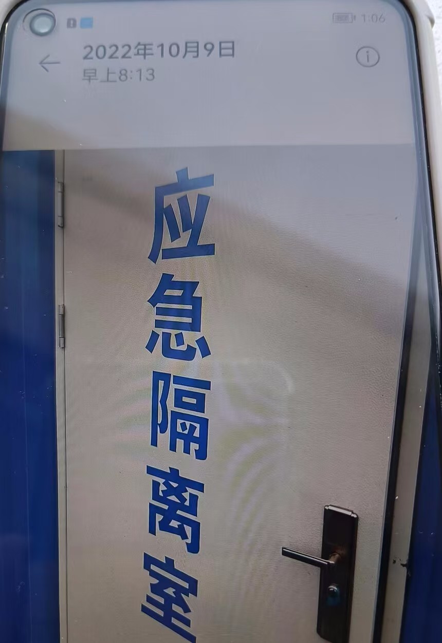 第三天10月18曰,我强忍着巨大的病痛,在早晨自己打车到哈尔滨西站坐高铁离开了哈尔滨,前往北京手术。但在途中又被他们拦截到哈尓滨市松北区万宝“卡点”板房内隔离了“五夜六天”!这是他们实施的非法变向扣压!