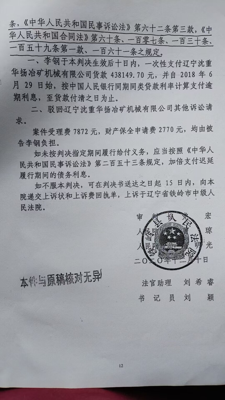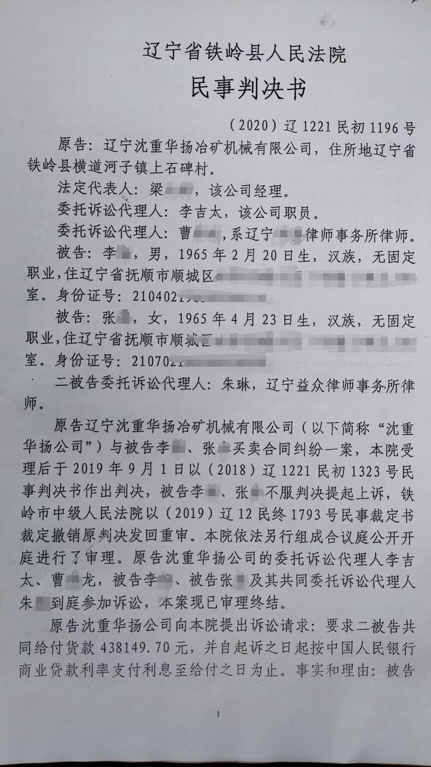 实名举报人、《民生诉播》媒体委托人来自辽宁省海城市的李吉太说到:“我叫李吉太,是辽宁沈重华扬冶矿机械有限公司代理人!辽宁省抚顺市石油机械厂其分支机构抚顺石油机械厂炼钢分厂厂长是李某。2005年8月9日,抚顺市中级人民法院宣告抚顺石油机械厂破产还债,2008年7月30日该炼钢分厂被吊销营业执照。抚顺石油机械厂2018年转卖开发商盖楼已经不在。分厂厂长李某却隐瞒营业执照被吊销的事实,在2011年9月拿着炼钢分厂公章亲自和原告辽宁沈重华扬冶矿机械有限公司签订了购销合同二份,购买铰链粱毛坯铸钢件,加工后卖给山东淄博巨龙金刚石公司法人王某,王某已将货款全部交给分厂厂长李某,至今欠尾款438149.70元,李某耍赖不给尾款!